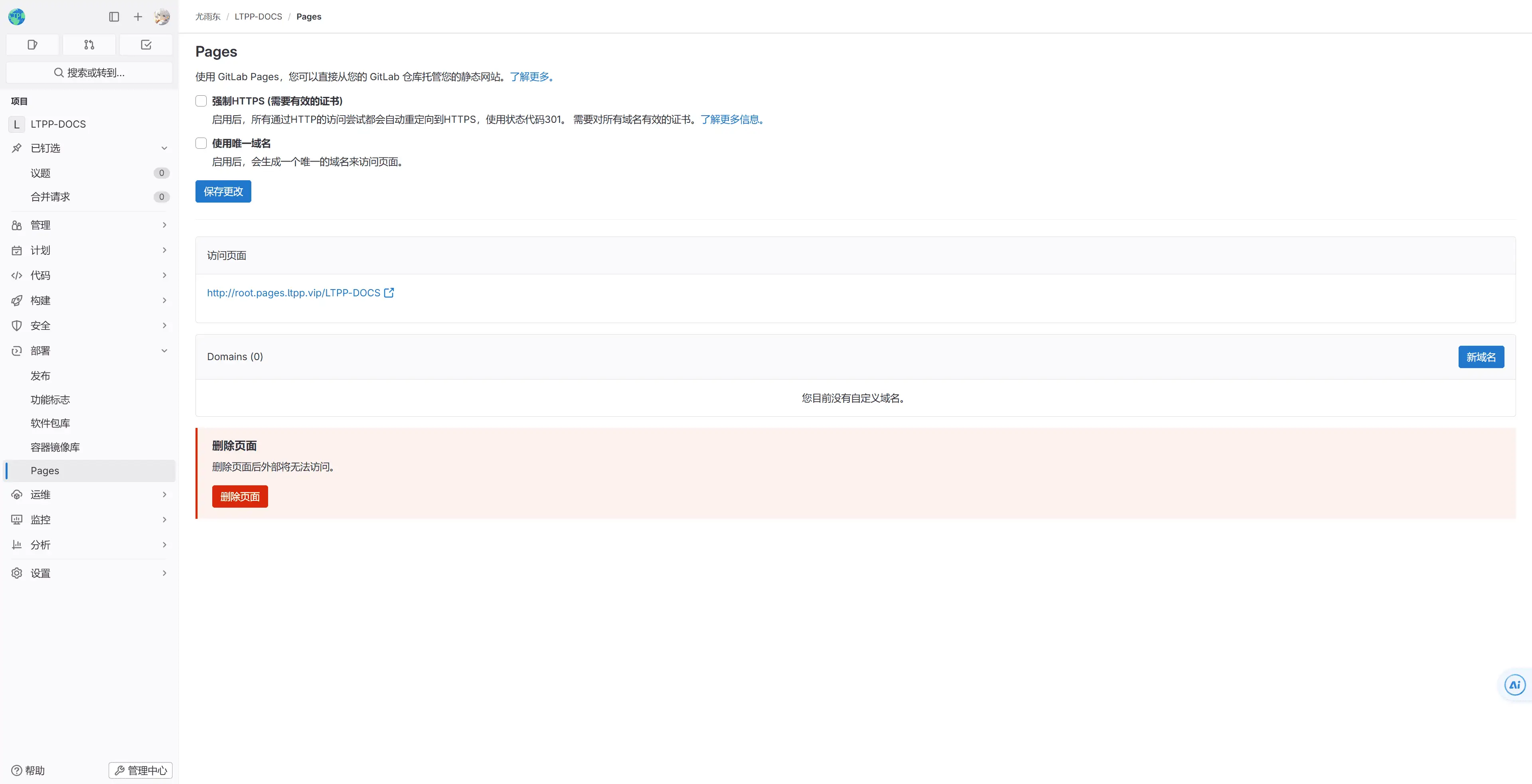 GITLAB 仓库基于 GITLAB 部署支持以下功能