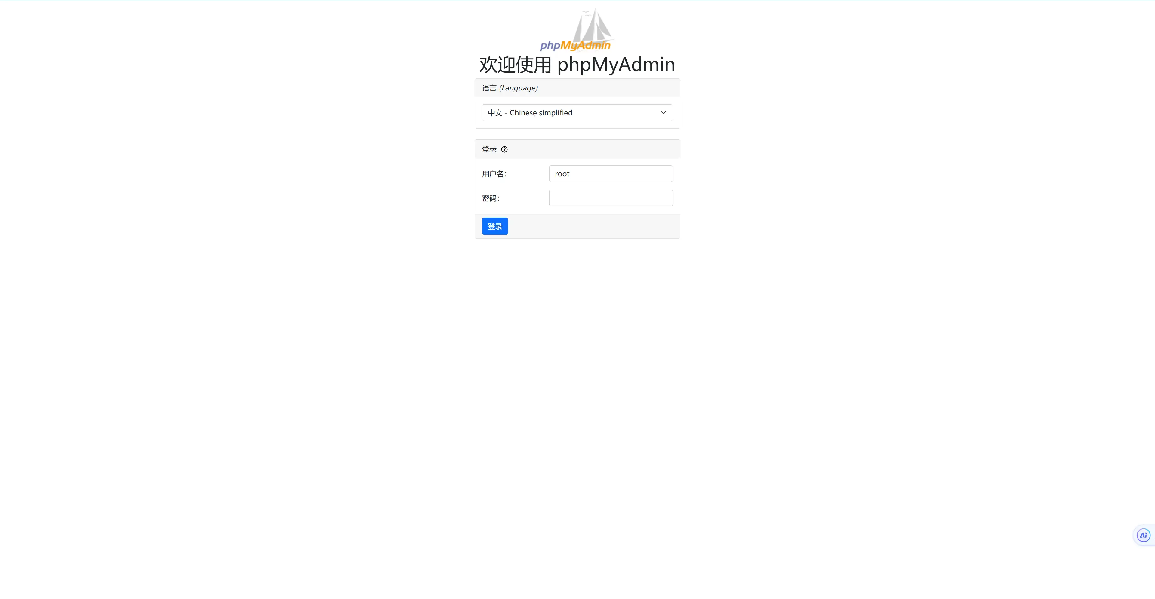 phpmyadmin 登录界面